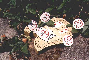 Perhaps no cribbage board design has ever generated more interest among people, young and old alike, than the "29" board. Featuring a once-around 120 hole track, the board is easy to play on , with little chance for error. Giving strength to that feature, your opponent can't claim that you're still on second street if he/she is lagging behind, for the board doesn't lie! 120 holes you see, 120 holes you peg, with the peg-out hole (#121) bringing home the win.