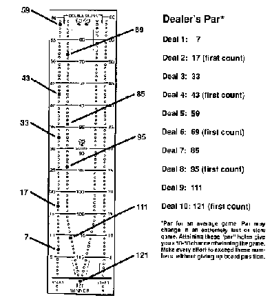 In previous articles, we discussed the Twenty-Six Theory. Memorize the "par" holes in this, and the next article, both for the dealer and for the non-dealer. Note the position of the "par" holes when you will be the non-dealer and having first count. The game may be very slow, or a very fast game, and you will have to readjust your game, perhaps several times, to maintain your advantage, or trying to attain an advantage. Many games will be played that the luck of the draw simply forbid your winning, despite all your efforts of maintaining, or attaining, board position.